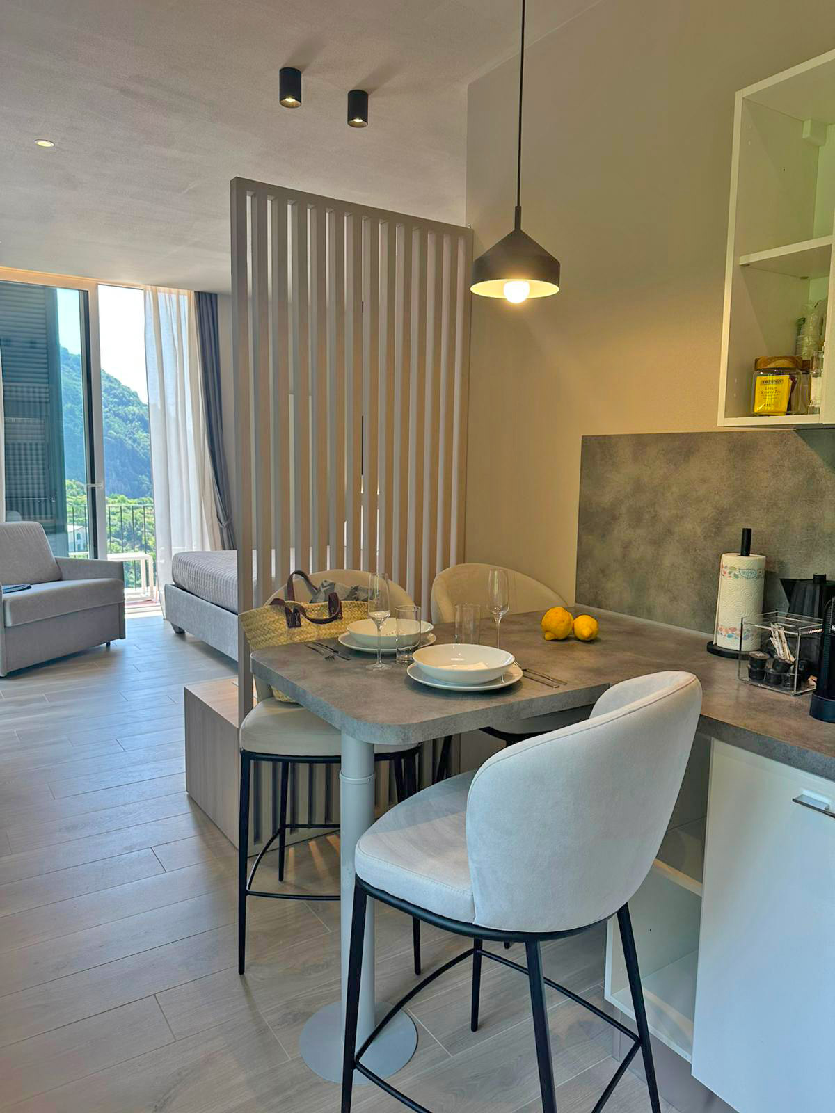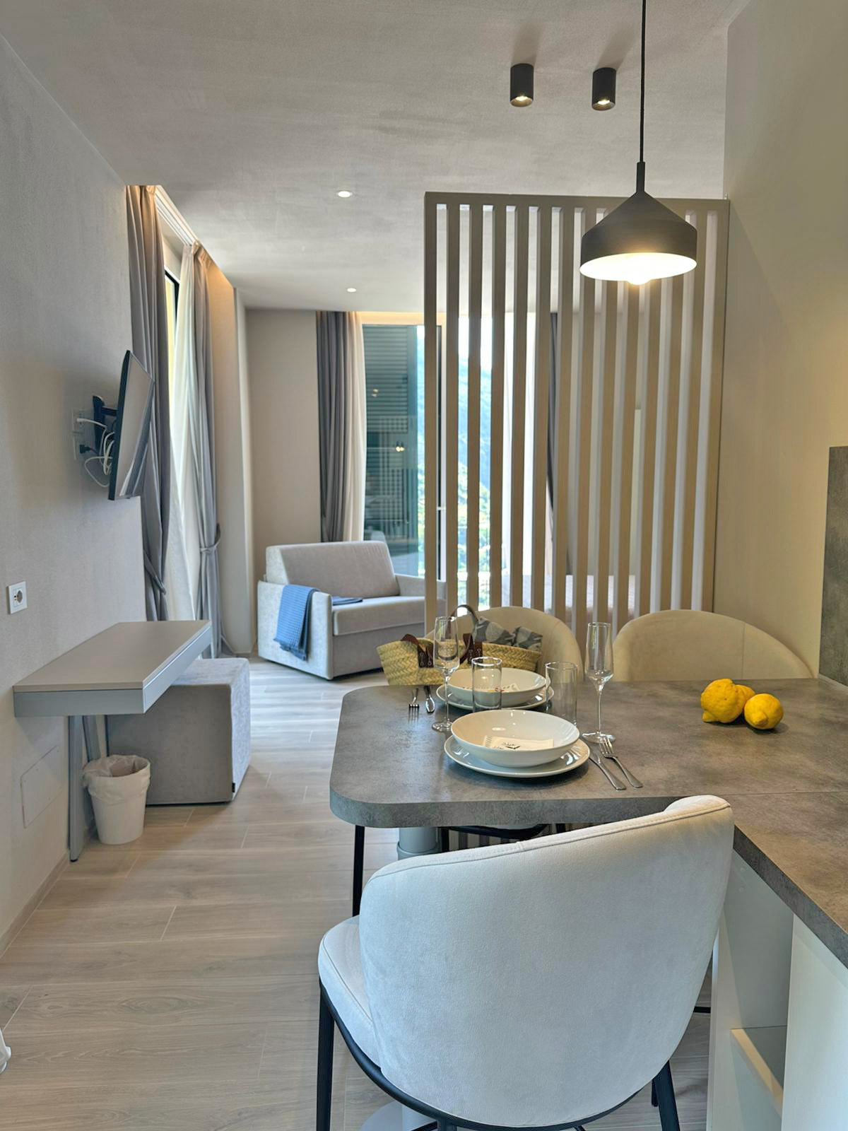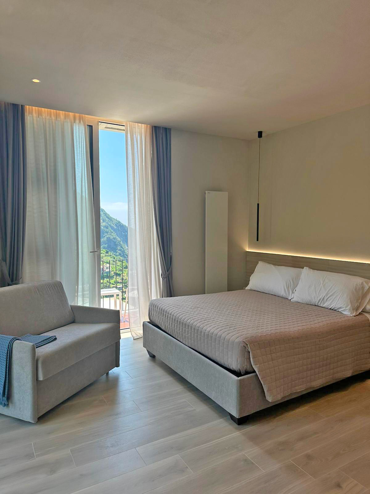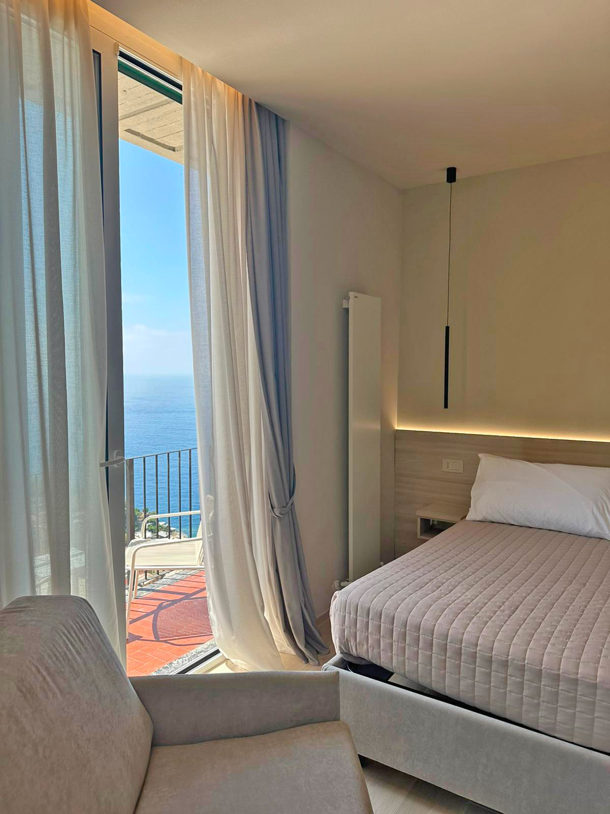 A LUXURIOUS AND SPACIOUS HIDEAWAY WITH A KITCHENETTE AND BALCONY WITH SPECTACULAR SEA VIEWS.